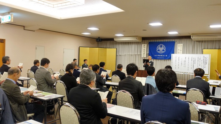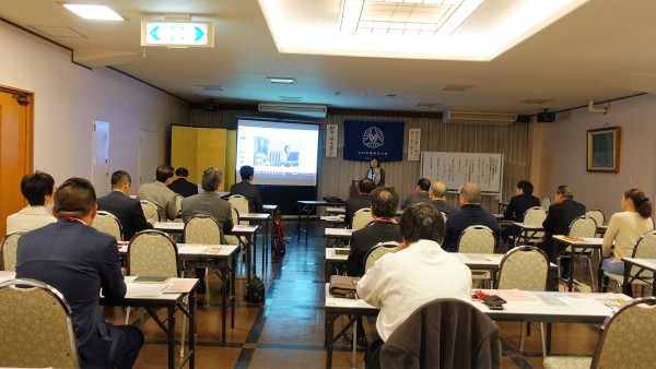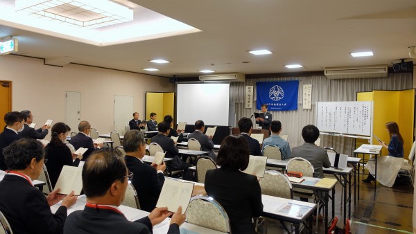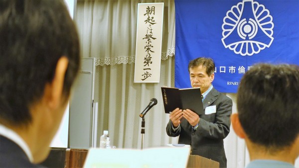 由宇町出身の山近義幸氏による講話でした。現在は東京を中心に全国の企業経営者や新入社員を対象に人間力教育を行っておられます。特に知覧で実際に特攻隊員が使用した富屋旅館で疑似体験を通して学ぶプログラムで、これから私たちが何を行うべきかを伝えられています。