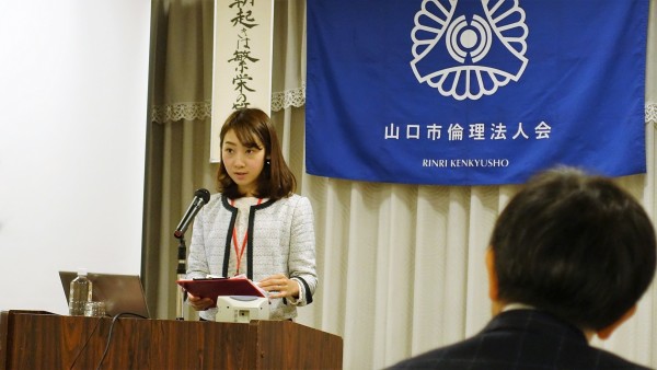 「12月、山口市はクリスマス市になる。」というテーマで、デスティネーションキャンペーン『光誕祭』の企画に携わられた「えすぷらん」代表の杉本理恵子氏による講話でした。