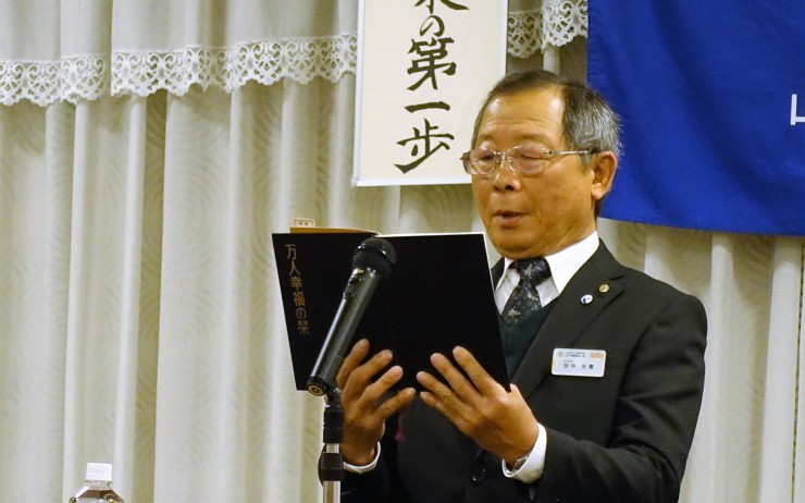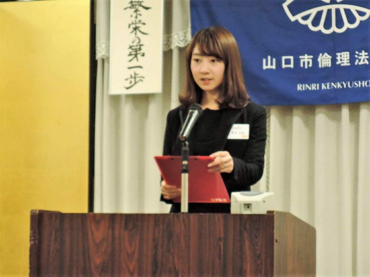 講話は、泉憲治中国四国副方面長の『小我を捨て、大我に生きる』と言うテーマで、16歳で受講した富士研での高校生セミナーで心に入った「恩の遡源」から、世のため人のために恩を意識することについて学びました。
