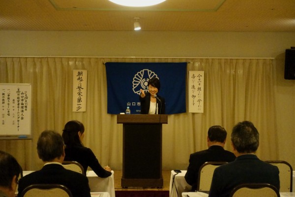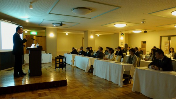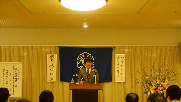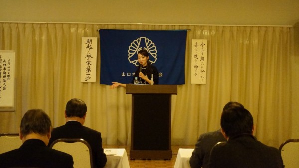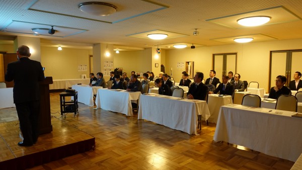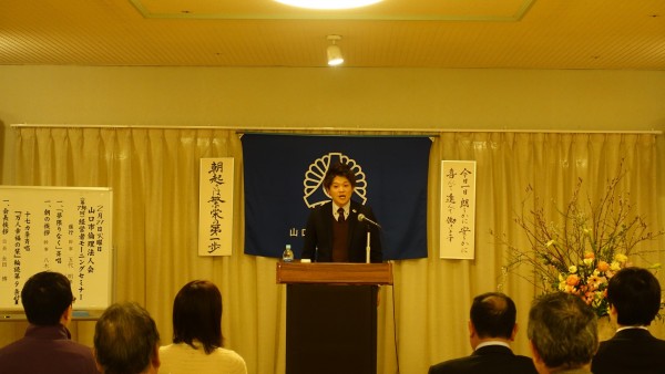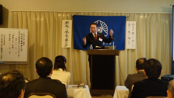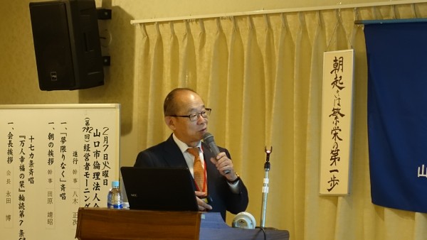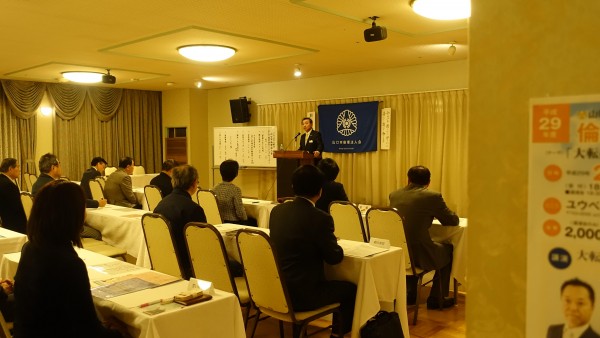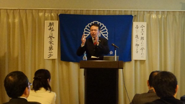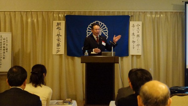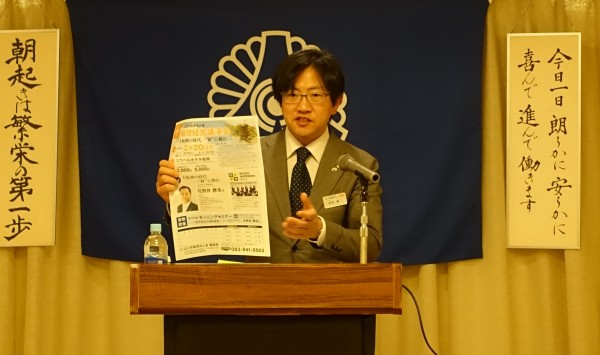 八木幹事による会員スピーチ後、昨夜の基礎講座に続き法人局参事 岡田紀夫法人アドバイザーの講話を聴きました。