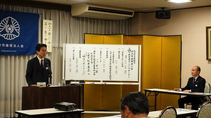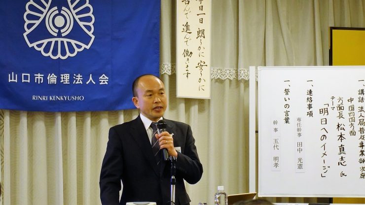 防府市倫理法人会会長、ホルモン焼肉どん代表の河合達也氏にご講話いただきました。