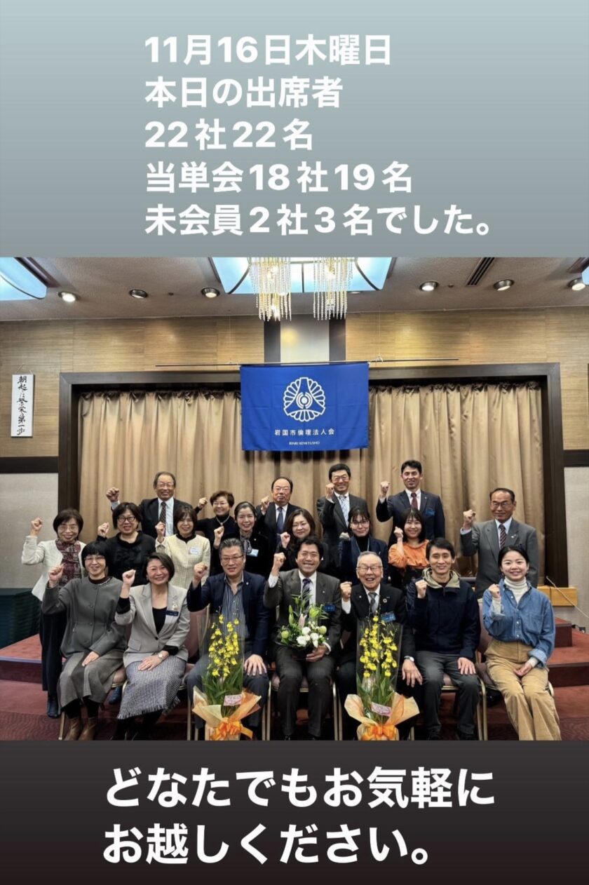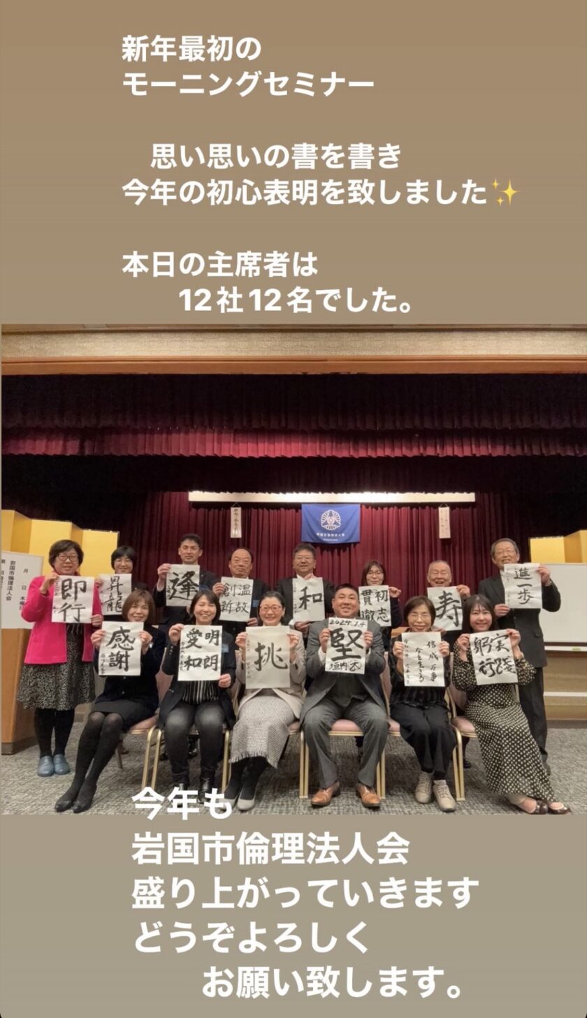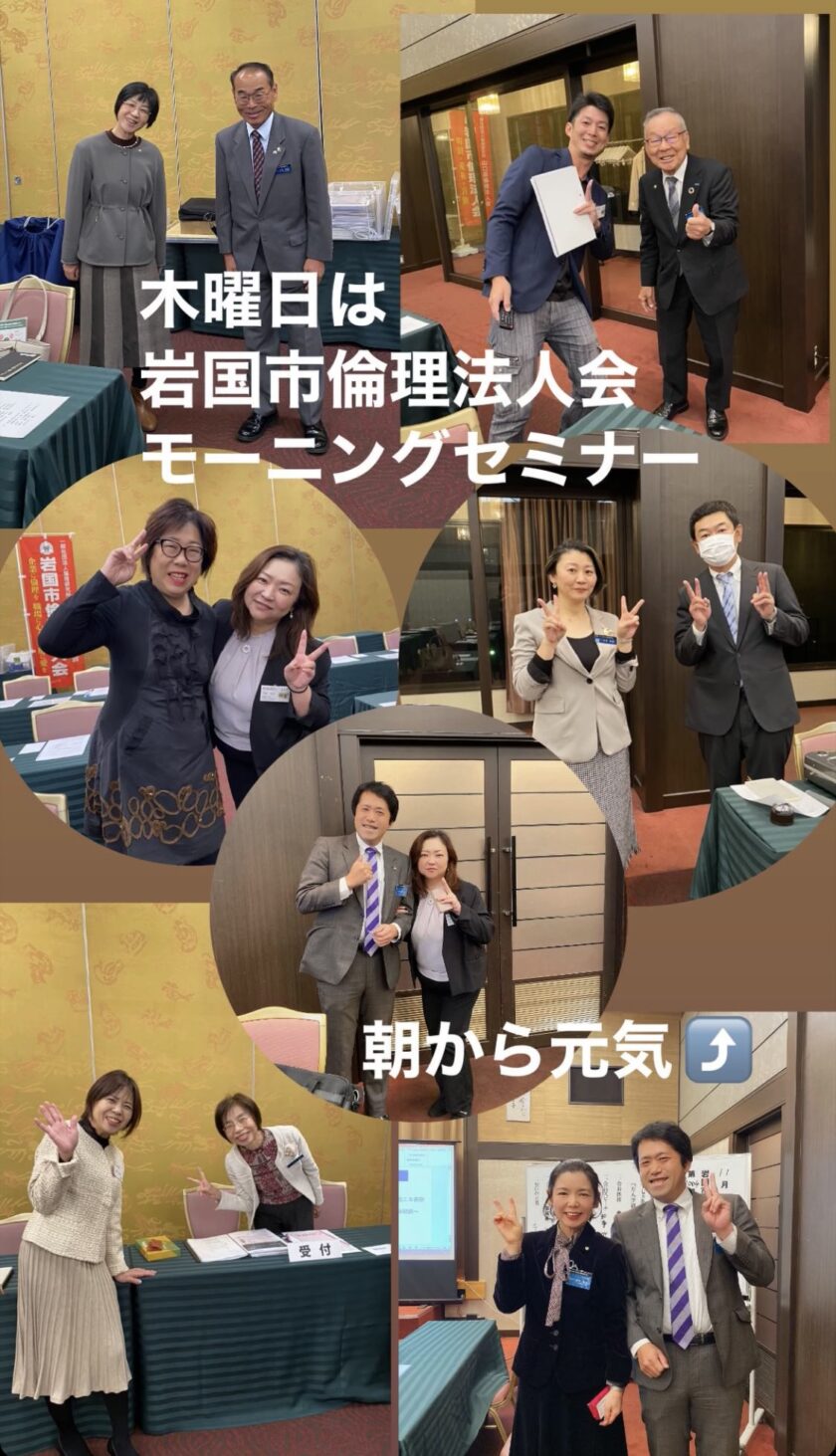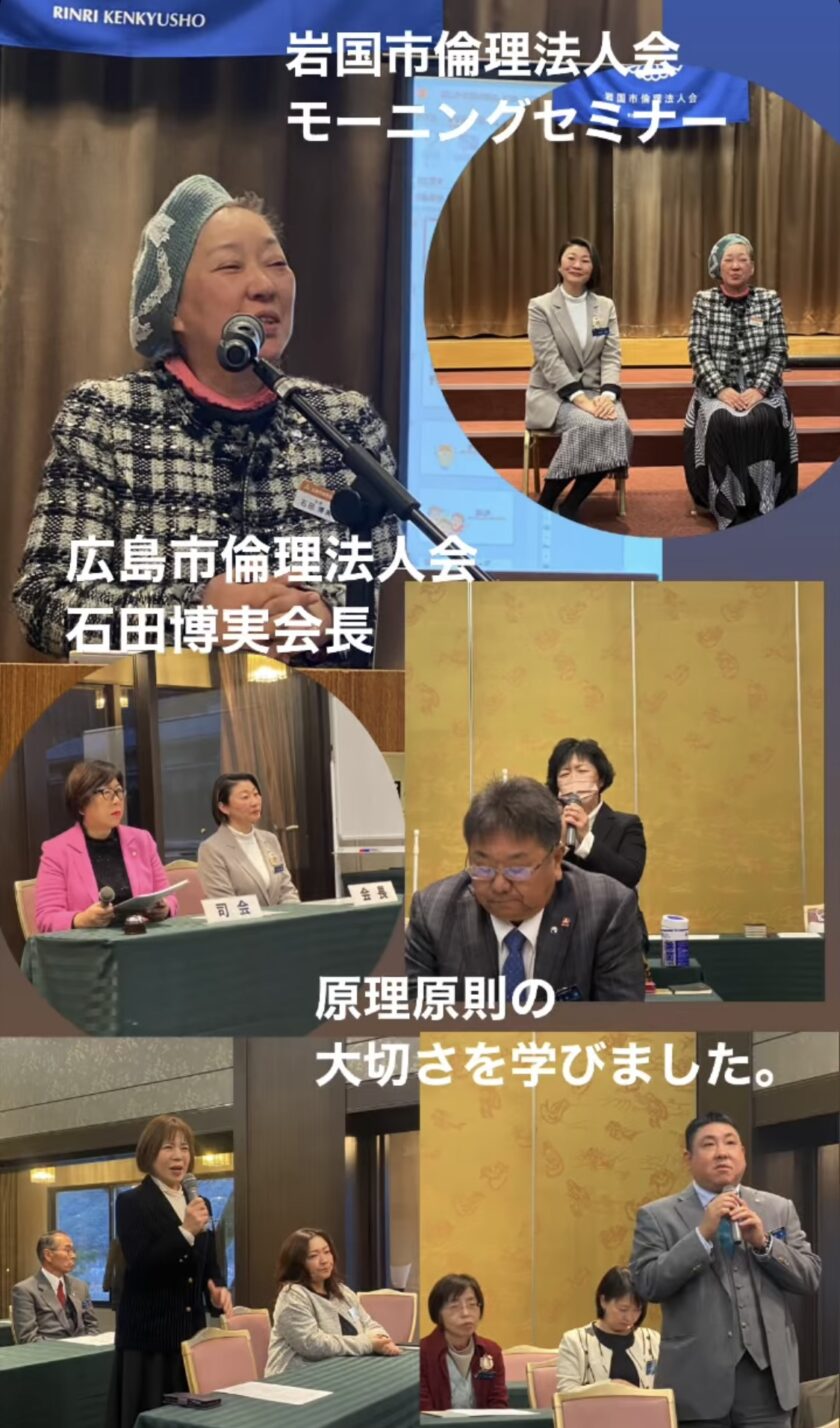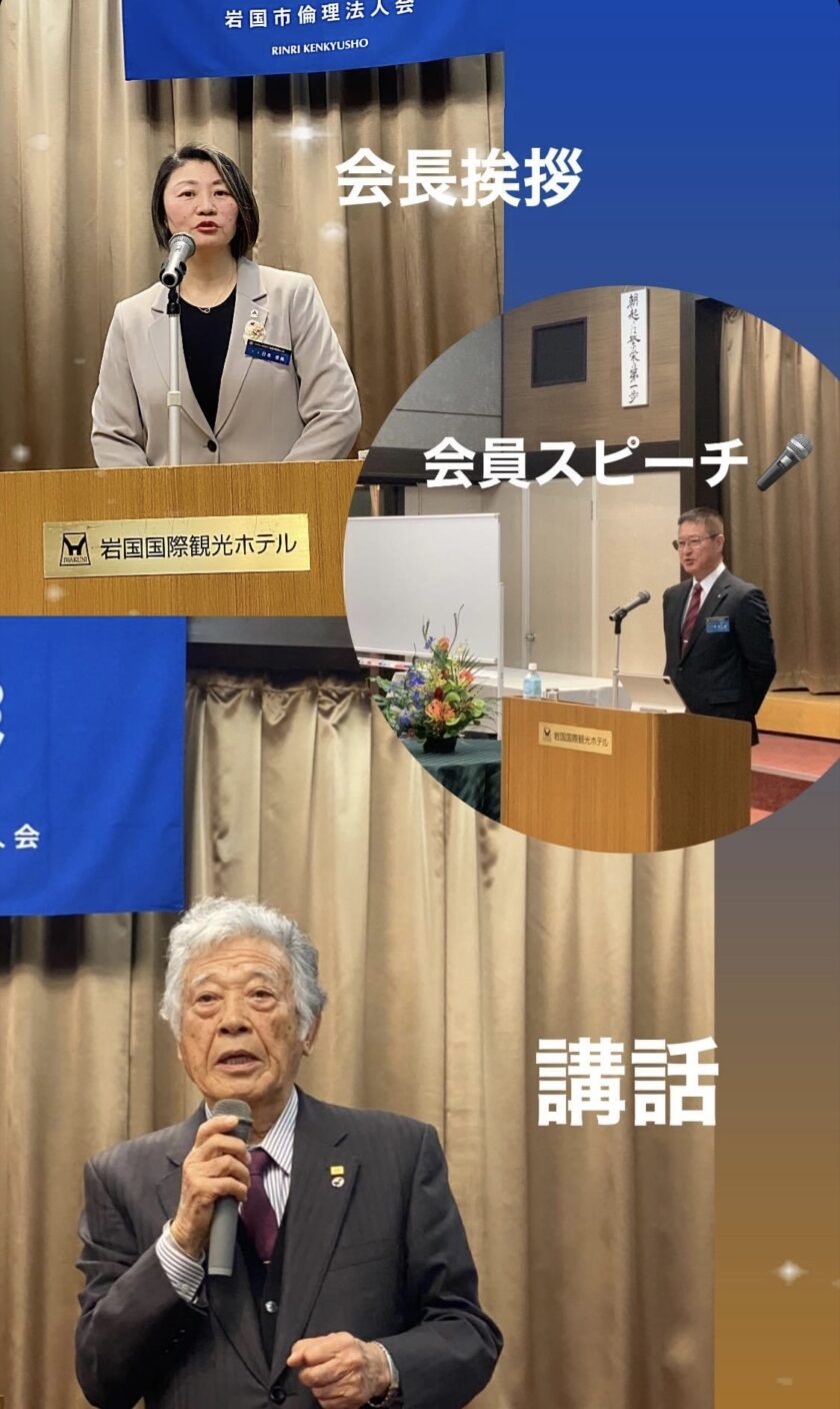 | 講師 | 岩国市倫理法人会 幹事 家本喜久雄氏 副専任幹事 惠良 初美氏 幹事 森松敏氏 会員 成定由季子氏 |