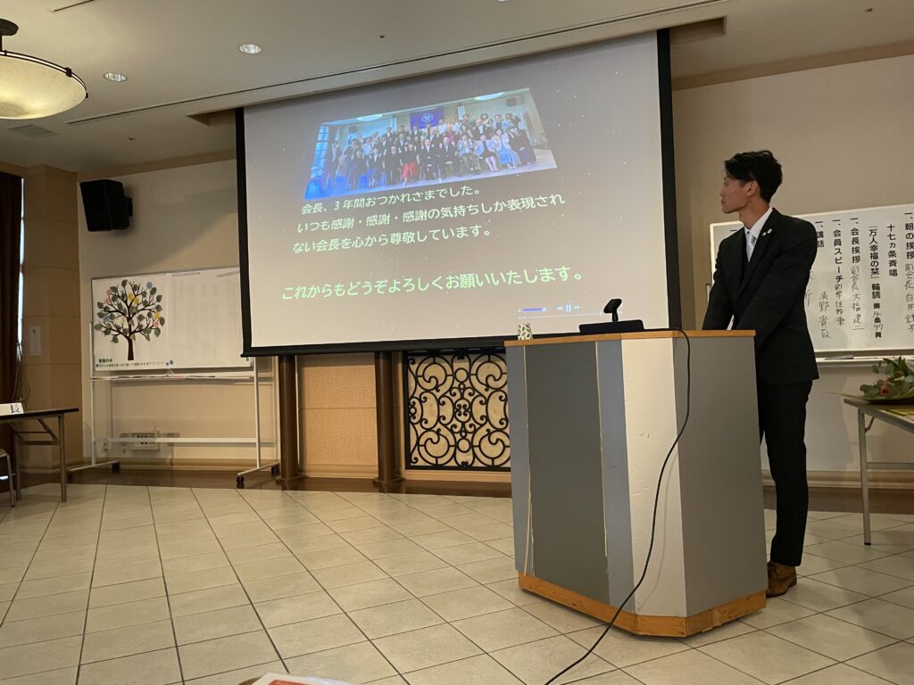 6代目会長へのありがとう・お疲れ様を込めたビデオメッセージのサプライズ。