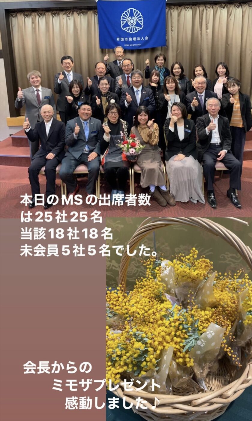 講師に山口県倫理法人会副事務長で、(株)フェスティナ•レンテ代表取締役の野関由味子さまをお迎えし、華やかに開催させていただきました。