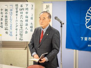 下関市2021.04.07 第853回 MS 講師:松本 浩之 氏((一社)倫理研究所法人局 法人スーパーバイザー)/テーマ:経営力を磨く 下関市2021.03.31 奉仕清掃活動 唐戸周辺 下関市2021.03.24 第852回 MS 講師:波佐間 清 氏(下関市社会福祉協議会 会長)/テーマ:「出会い・感動・夢への挑戦」私の教育・茶道実践から学んだこと 下関市2021.03.17 第851回 MS 講師:水上 隆男 氏(山口県倫理法人会 西部地区副地区長)/テーマ:社長が学べば、会社は良くなる 下関市2021.03.10 第850回 MS 講師:福井 龍介 氏((一社)倫理研究所法人局 法人スーパーバイザー)/テーマ:やるときは、ひとつずつ 下関市2021.03.03 第849回 MS 講師:川村 捷哉 氏(下関市倫理法人会 幹事)/テーマ:倫理の学びを深める 下関市2021.02.24 第848回 MS 講師:岡藤 善昭 氏(下関市中央倫理法人会 研修委員長)/テーマ:コロナ禍における働き方改革 下関市2021.02.17 令和3年度改定版経営者MSマニュアル 勉強会 下関市2021.02.10 第847回 MS 講師:山本 貞壽 氏(萩市倫理法人会 幹事)/テーマ:「留魂録」そして長州と会津 下関市2021.02.03 第846回 MS 講師:春口 貴亮 氏(宇部市倫理法人会 専任幹事)/テーマ:上質人生 下関市2021.01.13 第844回 MS 新年書初め式 下関市2021.01.06 第843回 MS 新年初詣(彦島八幡宮) 80ページ中11ページ目« First‹ Previous789101112131415Next ›Last »