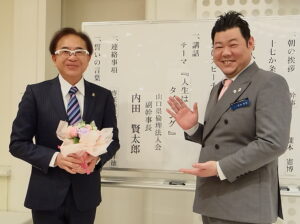 萩市2025.06.04 長門市倫理法人会設立に向けて:プレモーニングセミナー6/4(水) 防府市2025.05.29 第554回 防府市倫理法人会 会員 Life Place 代表 中川誠也氏 テーマ:推し活~倫理に出会えて変わったこと~ 下関市2025.05.28 第1037回 MS 講師:星 真理 氏(法人レクチャラー / 沖縄県倫理法人会 那覇•浦添地区副地区長) /テーマ:凛と輝く女性がつながるモーニングセミナー「母をたずねて三千里」 防府市2025.05.22 第553回 徳島県倫理法人会 研修副委員長 株式会社ユタカホーム 代表取締役 豊田聖司氏 テーマ:出会いに感謝 防府市2025.05.15 第552回 防府市倫理法人会 会員 橋本龍太郎氏 テーマ:人生のスイッチ 下関市中央2025.05.14 令和7年度 倫理経営講演会開催 防府市2025.05.08 第551回 島根県倫理法人会 女性委員長 坂本一美氏 テーマ:二人だからこそ開く新しい扉~不完全な1+1=無限大~ 岩国市2025.05.01 麻里布周辺の清掃 下関市中央2025.05.01 彦島八幡宮清掃 防府市2025.04.24 第550回 一般社団法人倫理研究所 法人局法人アドバイザー 株式会社トップ代表取締役会長 新庄 昇氏 テーマ:純粋倫理を人生に活かす 防府市2025.04.17 第549回 岡山県倉敷市倫理法人会 副会長 吉原由美氏 テーマ:幸せになる法則 宇部市2025.04.17 講師:三浦 貴史氏(一般社団法人倫理研究所 理事) 81ページ中2ページ目‹ Previous123456Next ›Last »