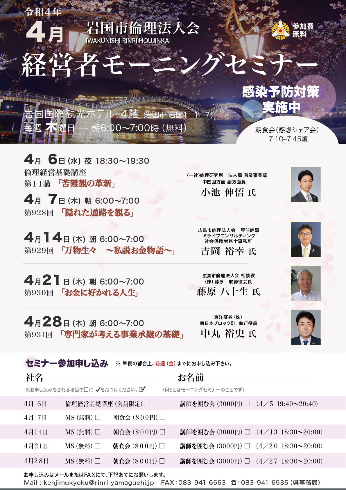 4月岩国市倫理法人会モーニングセミナー開催予定