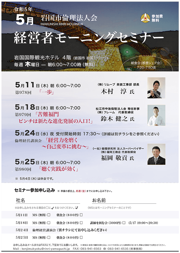 5月岩国市倫理法人会モーニングセミナー開催予定