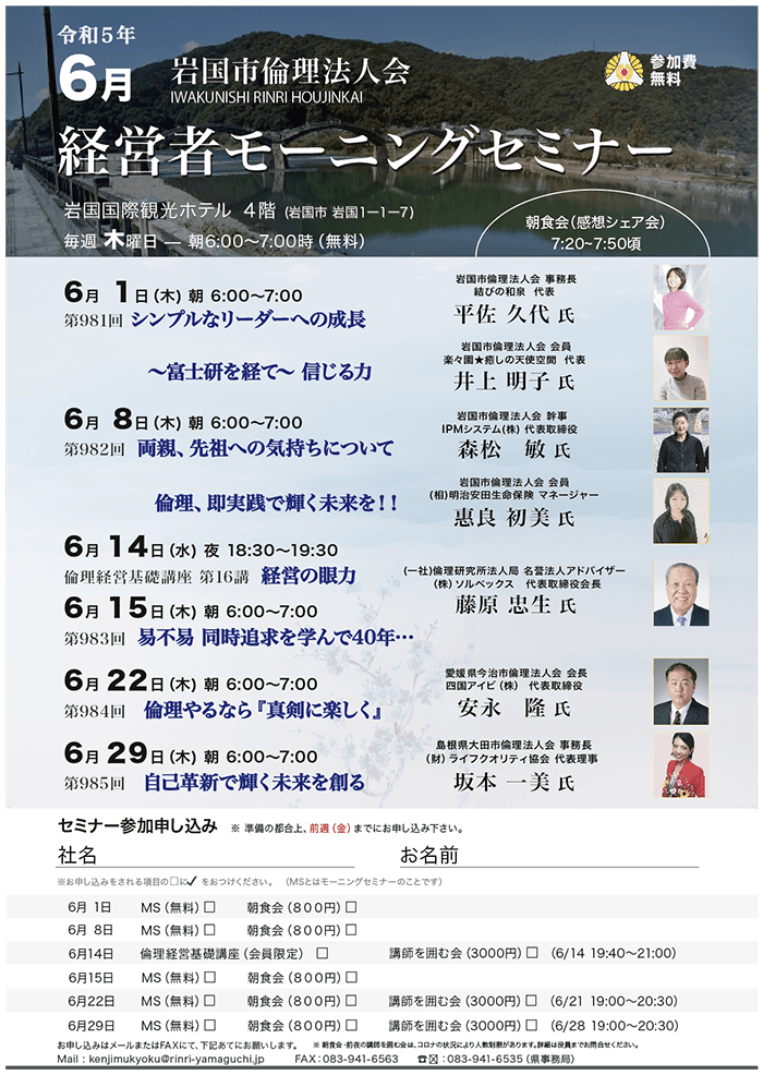 6月岩国市倫理法人会モーニングセミナー開催予定