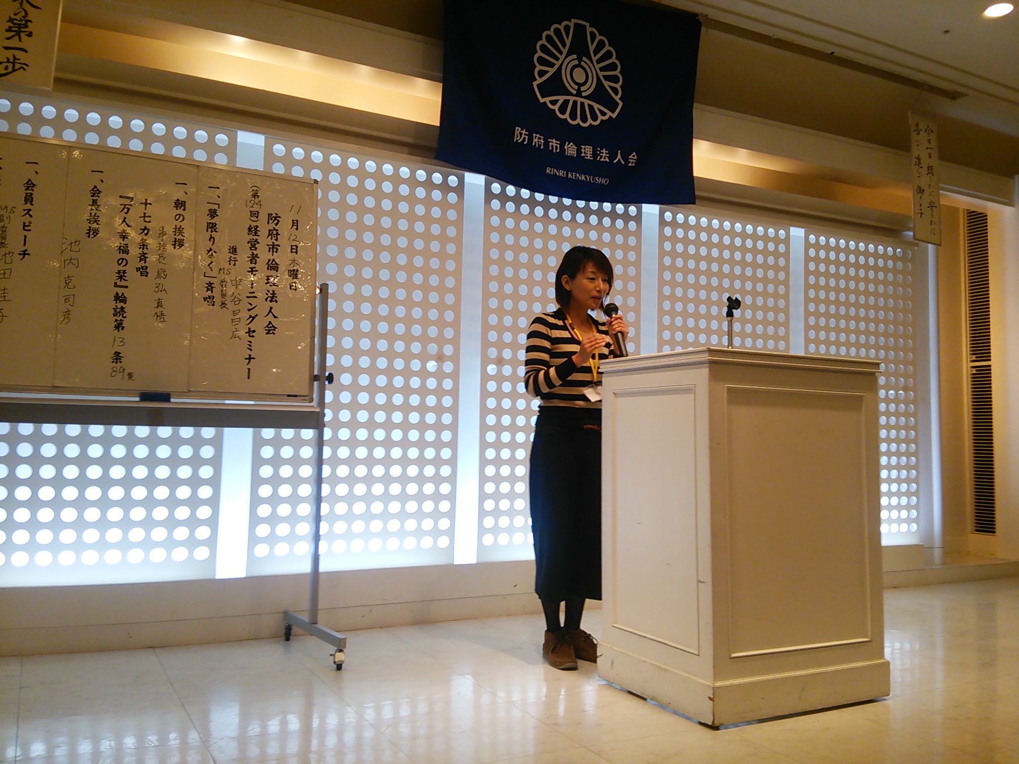 山口県内10か所の倫理法人会で毎週1回、朝6時から7時まで(一部のところは6時半から7時半まで)モーニングセミナーが開催されています。火曜日のところもあり、木曜日のところなどもあります。基本は各方面の講師の講演を聞くことですが、清掃奉仕活動や中学校に出向いて挨拶運動を行ったりということも行っています。私は基本が光下松倫理法人会なので、毎週金曜日は光市の松原屋に行きます。それ以外も行くことがあり、多いときは週3~4回参加します。思えば、約7年前に初めてモーニングセミナーに参加して、当時は朝早いのがつらかったのですが、だんだんと当たり前になり、モーニングセミナーに行った朝は特に気持ちよく、一日充実しています。早起きは三文の得とも言いますから。私にとっての大事なルーティンになっているのです。
