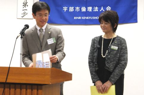 いつも夫婦仲良くお二人揃ってモーニングセミナーに参加されている山口市倫理法人会の安元夫妻による講話は、夫婦は一対の反射鏡と題して、いつも少し違ったスタイルでお話いただきました。