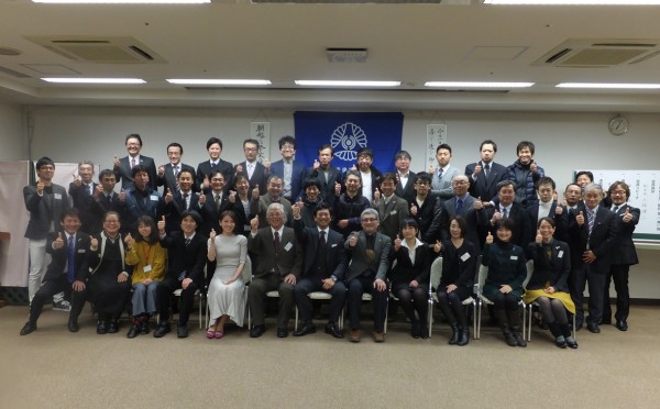参加者60名、いつもの決めポーズ「スイッチオン」で笑顔の記念撮影!
