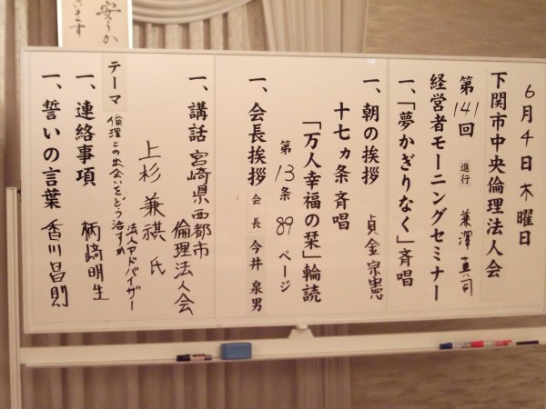講師ご自身の体験が感じられた倫理の肝のお話を、前日の幹部研修から引き続きご講話戴きました。