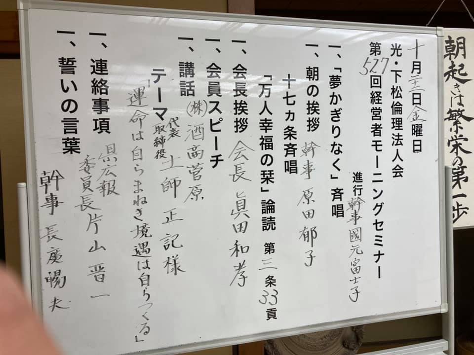 2021年10月22日(金) 第527回 MS 講師:福岡市倫理法人会会員 (株)酒商菅原 店長 土師 正記 様 『運命は自らまねき 境遇は自らつくる」-人間万事塞翁が馬-』