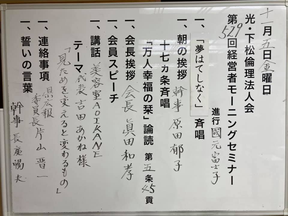 2021年11月5日(金) 第529回 MS 講師:美容室AOIKAN 吉田 あかね 様 『見た目を変えると変わるもの』